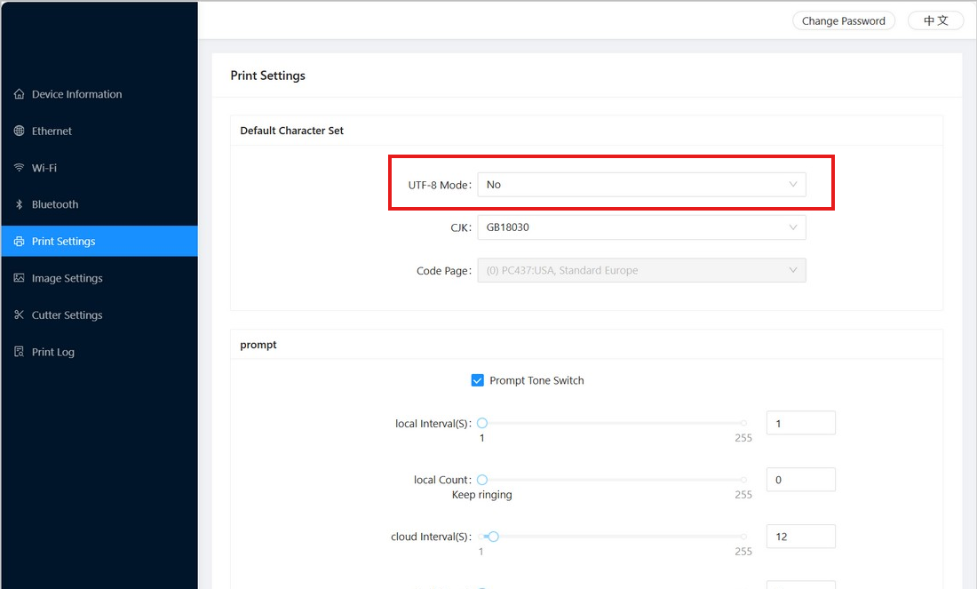 Standardmäßig unterstützt der Drucker keine deutschen Umlaute (ä, ü, ö).